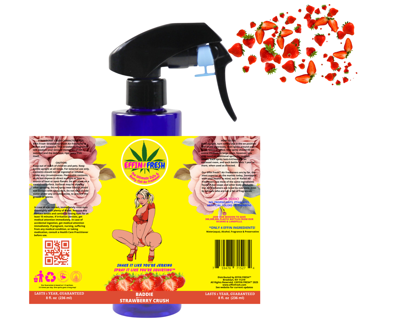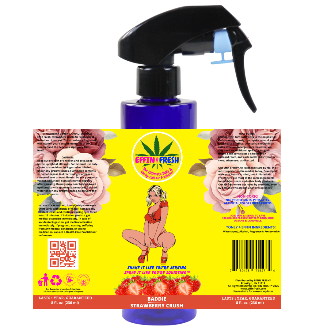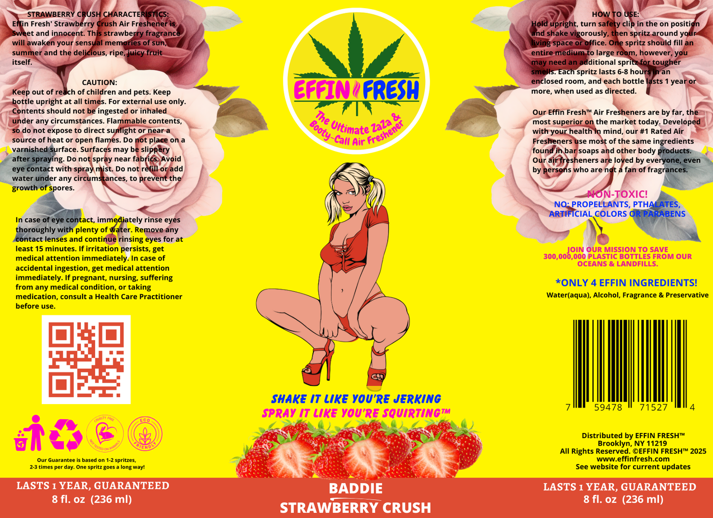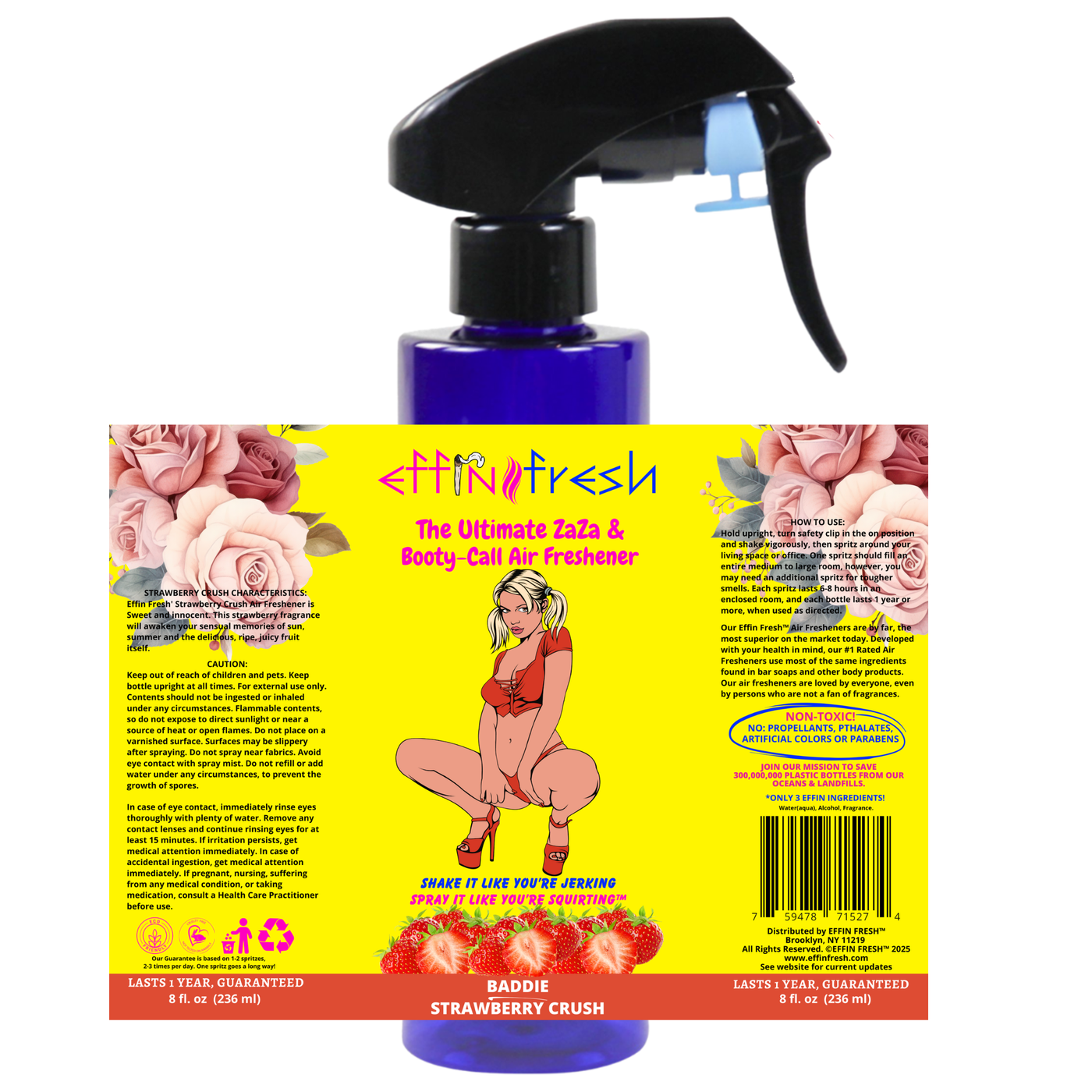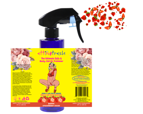 Effin Fresh' Strawberry Crush Air Freshener is Sweet and innocent. This strawberry fragrance will awaken your sensual memories of sun, summer and the delicious, ripe, juicy fruit itself.