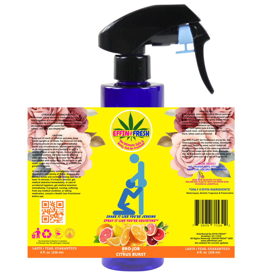 CITRUS BURST CHARACTERISTICS: Effin Fresh' Citrus Burst Air Freshener is a classic fine fragrance of a woody floral and citrusy type, surrounded by notes of orange blossom, vanilla, and dry sage. A energizing scent that brings you back to nature, and gets you Amped Up!